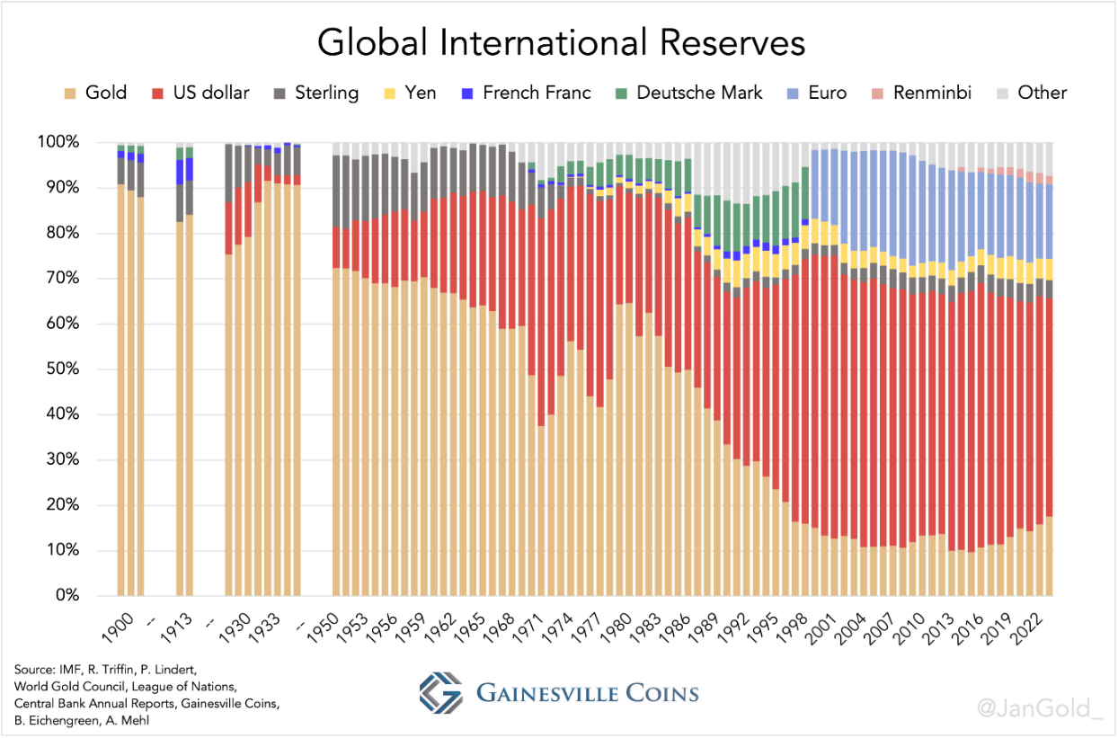 Composition of global international reserves. Source Gainsville Coins