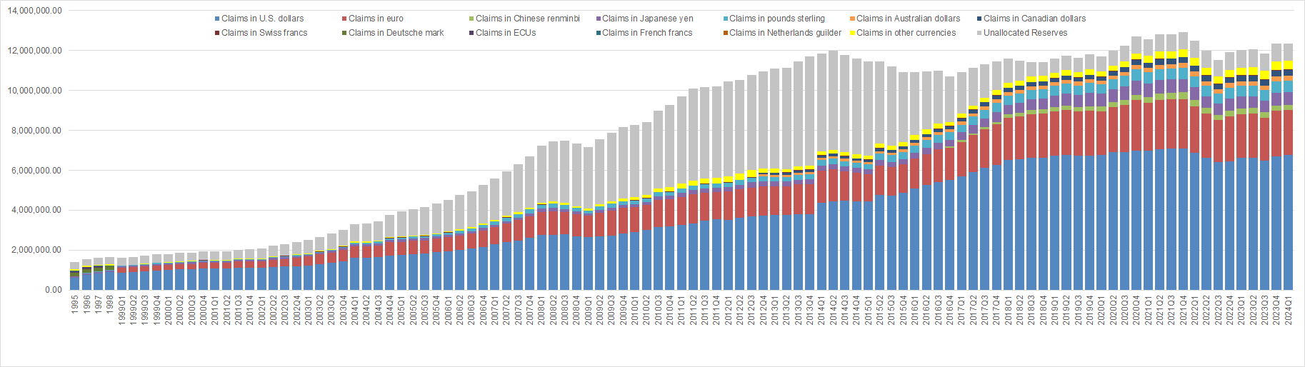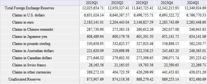Currency Composition of Official Foreign Exchange Reserves (COFER) 2023 – Q1 2024. Source: IMF