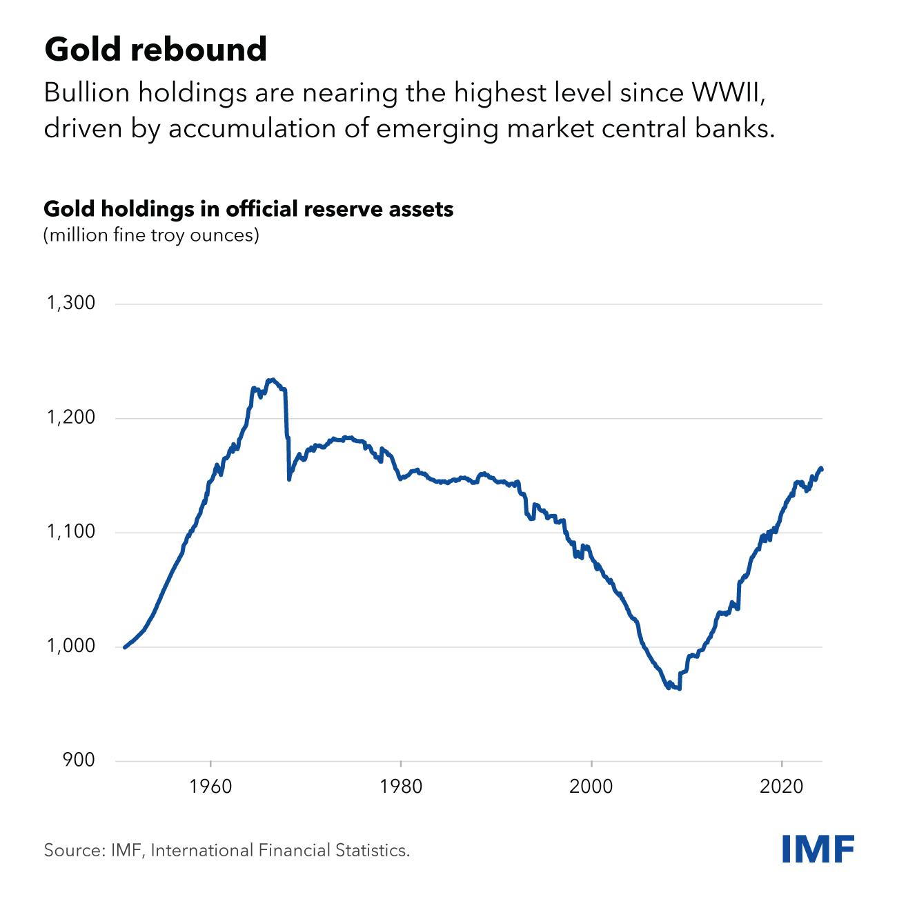 Official gold holdings on rebound. Source: https://www.imf.org/en/Blogs/Articles/2024/06/11/dollar-dominance-in-the-international-reserve-system-an-update