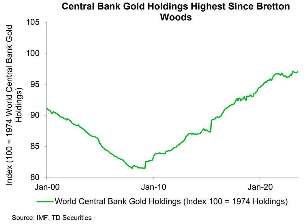 Central bank gold holdings are at highest level since 1974. Source: Gold Telegraph