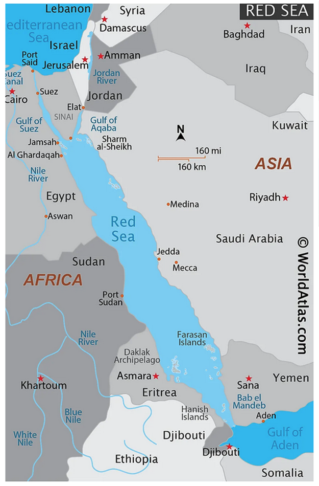 Region Morza Czerwonego. Źródło: https://www.worldatlas.com/seas/red-sea.html
