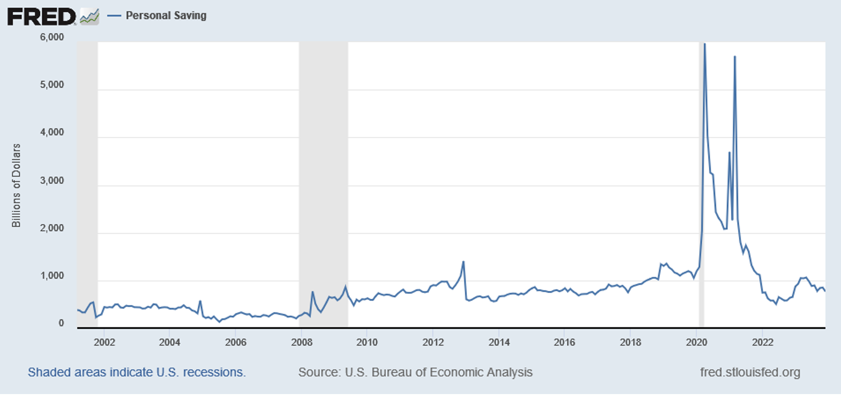 Oszczędności osobiste. Źródło: https://fred.stlouisfed.org