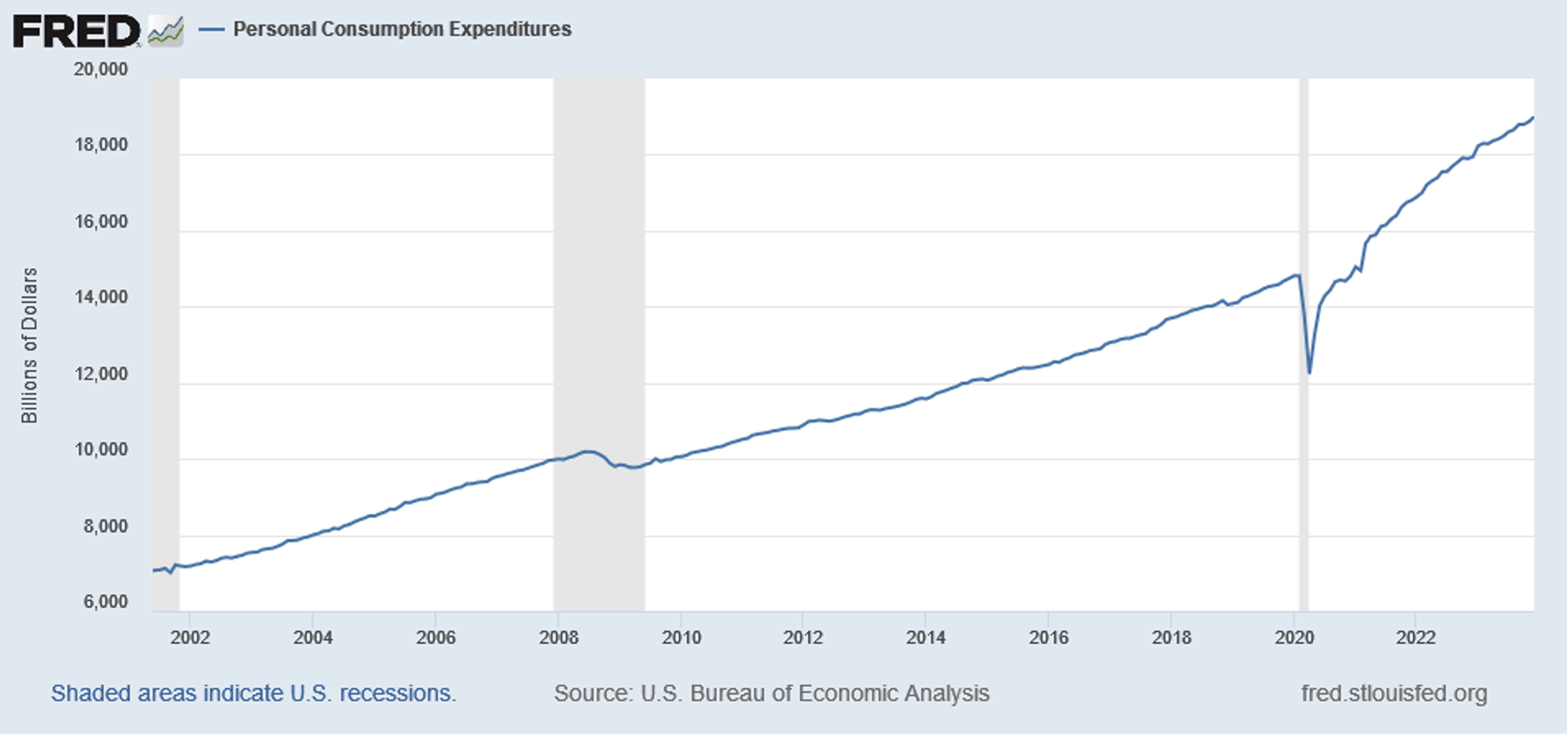 Wydatki na konsumpcję osobistą (PCE) w USA. Źródło: https://fred.stlouisfed.org
