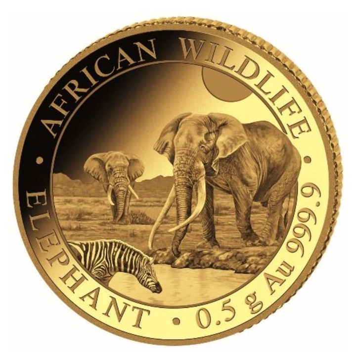 Moneta o masie 0,5 grama i średnicy 11 mm została wybita przez renomowaną Bawarską Mennicę Państwową (Bayerisches Hauptmünzamt) w Monachium, kontynuując tradycję bicia złotych monet sięgającą XII wieku. Seria African Wildlife, zapoczątkowana w 1999 roku pod patronatem Zambii, od 2004 roku ukazuje swoje edycje dzięki oficjalnemu wsparciu Republiki Somalii. Każdy rocznik przedstawia nowe ujęcie słonia afrykańskiego – symbolu siły i dostojności – co przyciąga uwagę zarówno kolekcjonerów, jak i inwestorów poszukujących różnorodnych nominałów.