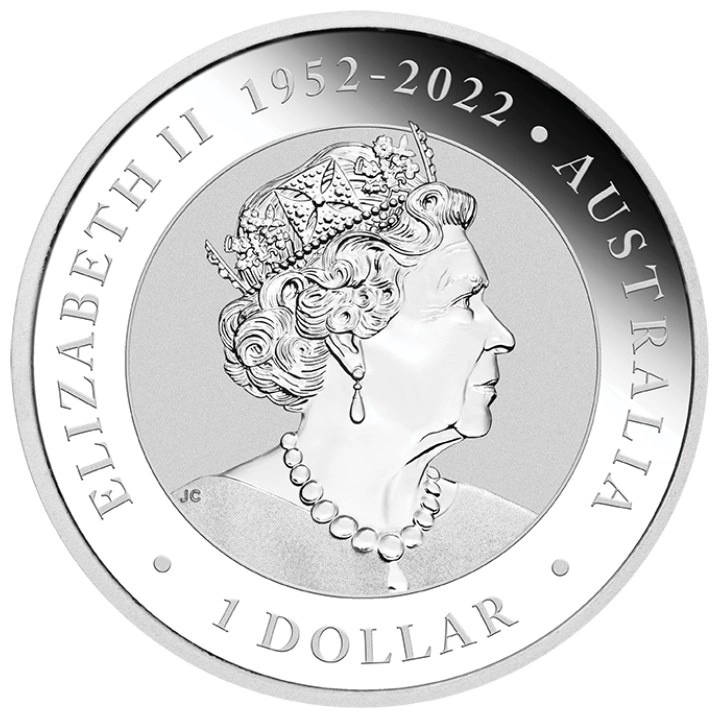 Awers ukazuje portret Królowej Elżbiety II, projektu Jody'ego Clark'a. Całość otacza napis "ELIZABETH II", "1952 - 2022", "AUSTRALIA" oraz informacja o wartości nominalnej monety.