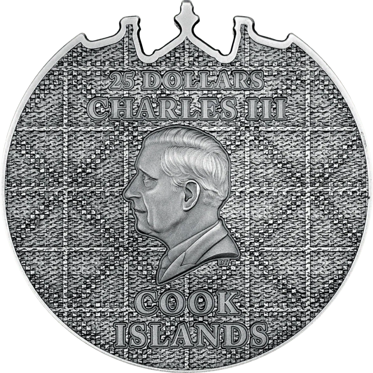Moneta została wybita z 5 uncji czystego srebra próby 9999, ma średnicę 50 mm oraz efektowne wykończenie Antique Finish uzupełnione kolorowanymi detalami. Jej nominał to 25 dolarów Wysp Cooka, a limitowany nakład obejmuje jedynie 500 egzemplarzy, co podkreśla jej ekskluzywny charakter i kolekcjonerską wartość.