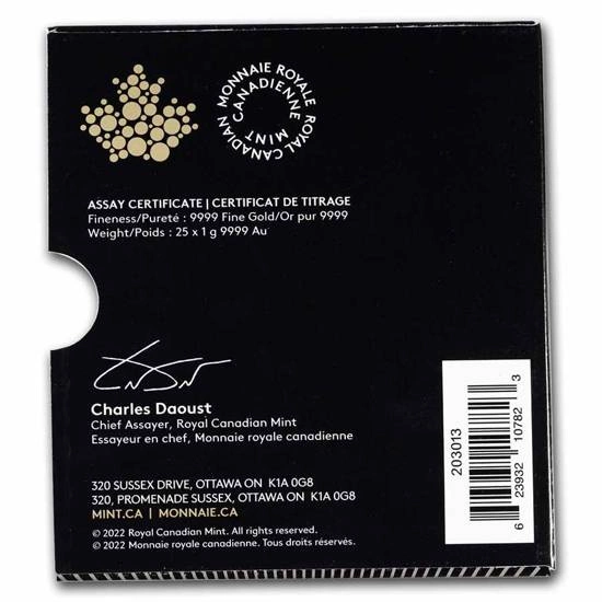Kanadyjski Liść Klonowy 1 gram Złota 2022 (25 szt.)
