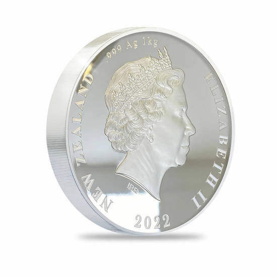 Kolekcjonerski numizmat Kiwi 1000 gramów Srebra 2022 Proof High Relief to wyjątkowa moneta pochodząca z emitowanej od 2004 roku limitowanej serii Kiwi. Produkt z 2022 roku przedstawia "Kiwi pukupuku", inaczej nielota nazywanego kiwi mały. Walor bity jest z czystego srebra próby Ag.999, o wadze 1000 gramów oraz średnicy liczącej 100 mm, przez mennicę New Zeland Post.