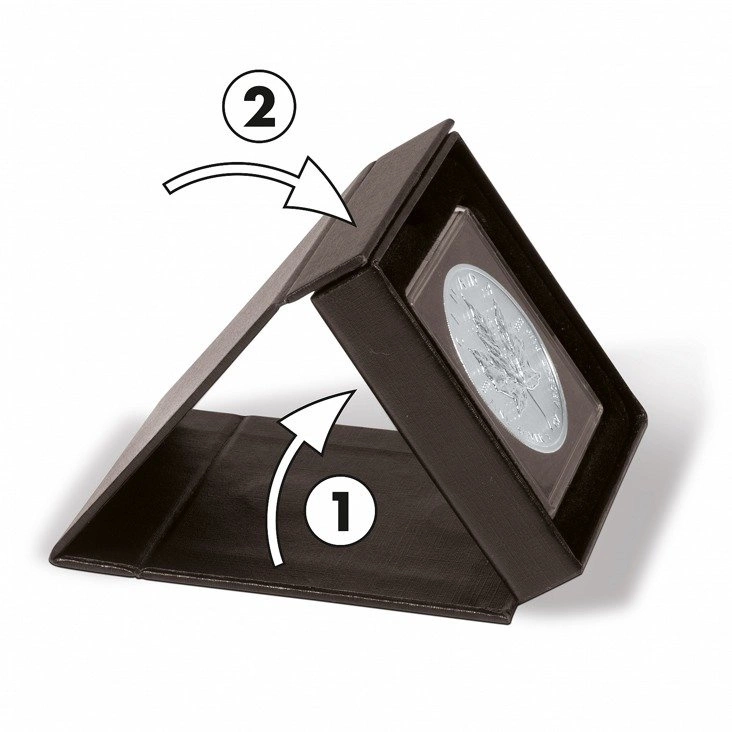 Wiele rodzajów opakowań na monety inwestycyjne umożliwia dość efektowną ekspozycję kolekcjonerskich numizmatów, ale liderem w tej dziedzinie pozostaje etui Airbox marki Leuchtturm, które jest dostępne w wielu różnych rozmiarach (na jedną, dwie, trzy, cztery lub pięć monet). Etui można szybko i wygodnie przekształcić w estetyczny pulpit na monety oraz równie szybko przywrócić całej konstrukcji pierwotny kształt.