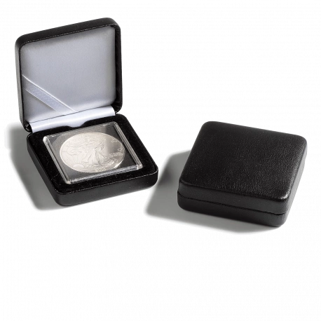 Eleganckie etui Nobile Quadrum zaprojektowano tak, by można było umieścić w nim monety inwestycyjne w popularnych kapslach Quadrum od producenta Leuchtturm. Kompaktowy futerał to znakomite zabezpieczenie dla najcenniejszych walorów w kolekcji oraz idealny pomysł na nietuzinkowy upominek dla miłośników numizmatyki. Etui wykonano z bezpiecznych, bezkwasowych materiałów, które w żaden sposób nie zaszkodzą monetom bulionowym.