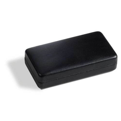 Eleganckie etui Nobile Quadrum to wyjątkowo wyszukana propozycja dla kolekcjonerów. Produkt sprawdzi się w roli przechowywania i eksponowania najcenniejszych lub szczególnie ulubionych walorów w zbiorze. Etui Nobile Quadrum wykonano z metalu, który został pokryty czarną, gładką skórą ekologiczną. We wnętrzu znajduje się czarna wyściółka z miejscem na monety. Pokrywa od środka została wykończona satynową, jasną tkaniną, która dodaje całości szyku i elegancji oraz sprawia, że numizmaty prezentują się w etui jeszcze bardziej okazale. Producentem etui jest firma Leuchtturm.