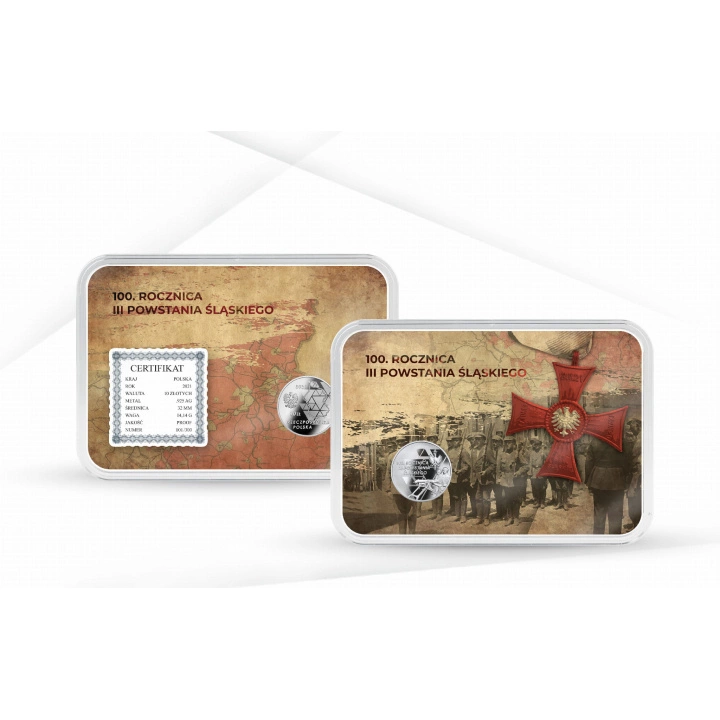 Wydana przez Narodowy Bank Polski w 2021 roku srebrna moneta kolekcjonerska o nominale 10 zł upamiętnia setną rocznicę jednego z najważniejszych zrywów niepodległościowych XX wieku – III Powstania Śląskiego. To właśnie dzięki poświęceniu i odwadze powstańców część Górnego Śląska została przyłączona do odrodzonej Rzeczypospolitej. Moneta, wybita w srebrze próby 925, łączy w sobie historyczną symbolikę oraz precyzyjne wykonanie, czyniąc ją atrakcyjną zarówno dla kolekcjonerów, jak i miłośników historii Polski.