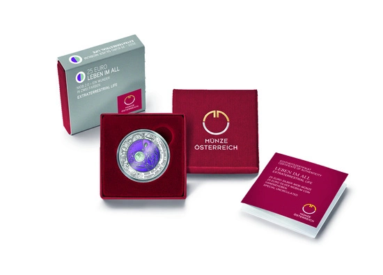 Extraterrestrial Life 25 Euro 2022 nawiązuje do rozważania, czy ludzka cywilizacja na Ziemi jest jedyną w całym wszechświecie. Walor to niobowo - srebrna moneta, która została wykonana z kruszcu próby Ag.900 oraz Nb.998. Waga całkowita monety to 15.5g. Za ograniczoną do 65 000 sztuk produkcję niobowej monety odpowiada europejski producent metali szlachetnych Austrian Mint. Co ważne, moneta z roku 2022 posiada gwarancję rządu Austrii oraz jest pełnoprawnym środkiem płatniczym na terenie kraju emitenta. Ponadto produkt jest dostarczany wraz z indywidualnym certyfikatem autentyczności w eleganckim etui.