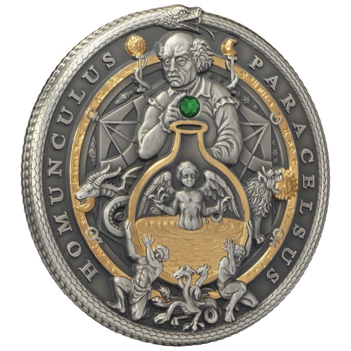 Rewers ukazuje Paracelsus'a i stylizowane elementy alchemiczne. Rewers zawiera napis "HOMUNCULUS", "PARACELSUS" oraz zielony kryształ Swarovskiego®.