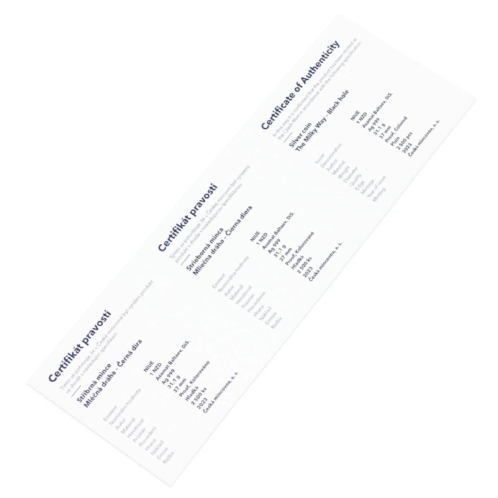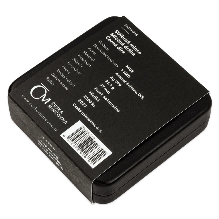 Niue: The Milky Way - Black Hole kolorowany $1 Srebro 2023 Proof jest kolejną monetą z serii "The Milky Way". Walor dedykowany jest "Czarnej Dziurze". Jest to obszar czasoprzestrzeni, którego z uwagi na wpływ grawitacji, nic – łącznie ze światłem i informacją – nie może opuścić. Zgodnie z ogólną teorią względności, do jej powstania niezbędne jest nagromadzenie dostatecznie dużej masy w odpowiednio małej objętości.
