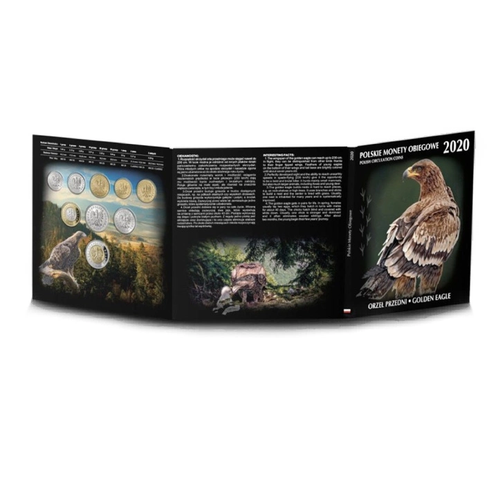 Polskie Monety Obiegowe "Orzeł przedni"- zestaw monet 1 gr - 5 zł 2020 zawiera walory o nominałach od 1 grosza do 5 złotych, wybitych w 2020 roku.