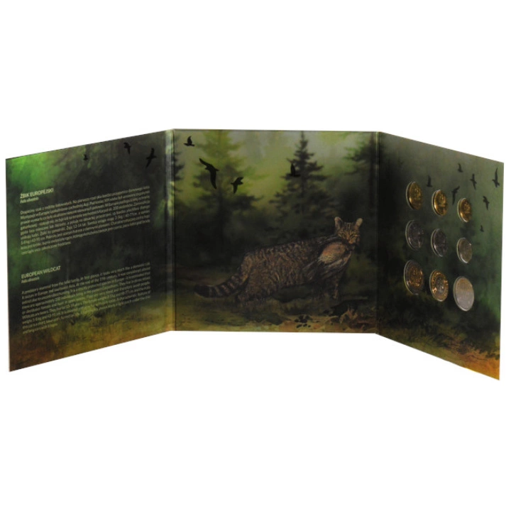 Polskie Monety Obiegowe "Żbik Europejski"- zestaw monet 1 gr - 5 zł 2023 zawiera walory o nominałach od 1 grosza do 5 złotych, wybitych w 2022 roku.