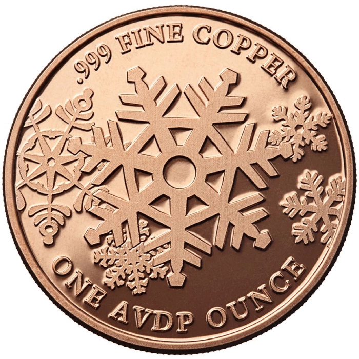 Rewers: Ukazuje spadające płatki śniegu w zimowej kompozycji. Na obrzeżu umieszczono informacje o wadze i czystości metalu.