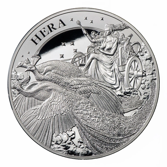Srebrna moneta przedstawiająca Herę to produkt wykonany z czystego kruszcu próby Ag.999, o wadze 10 uncji trojańskich, w standardzie proof. Hera w mitologii greckiej to bogini płodności oraz patronka małżeństw i macierzyństwa. Była żoną Zeusa. Moneta ta posiada gwarancję rządu St Helena oraz stanowi pełnoprawny środek płatności na terenie tego kraju. Co ważne, jest to srebrna egzemplarz, który posiada ściśle limitowany nakład. Warto zatem zainteresować się tą monetą, jak i całą serią.