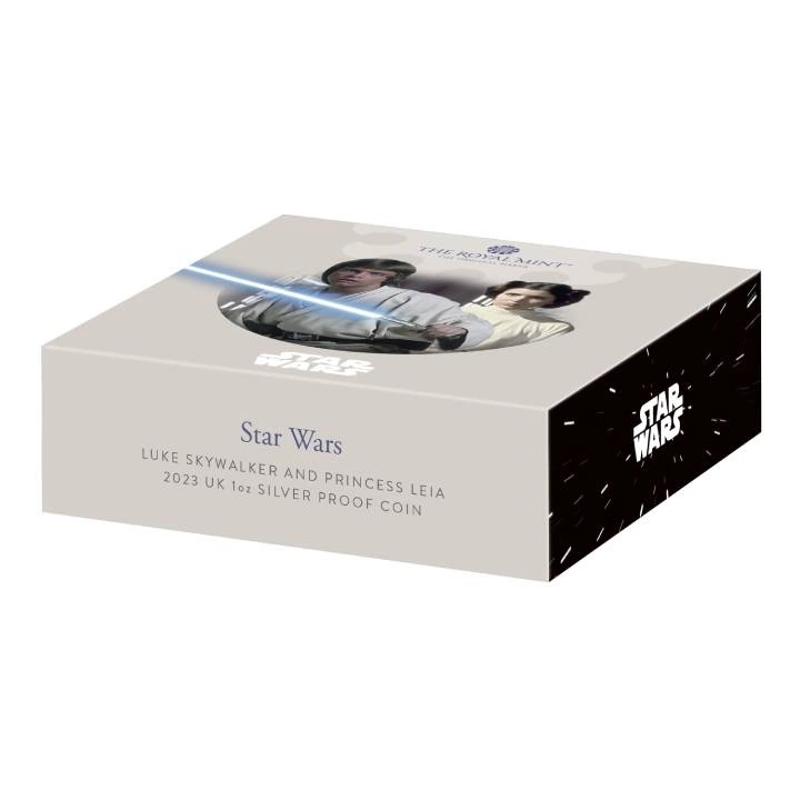 Star Wars: Luke Skywalker and Princess Leia 1 uncja Srebra 2023 Proof to trzecia moneta z serii "Star Wars". Walor jest numizmatycznym unikatem dla fanów ikonicznej sagi kosmicznej. Gwiezdne Wojny to fikcyjne uniwersum stworzone przez George'a Lucasa. Pierwszy film miał premierę w 1977 roku. Produkt prezentuje Luke'a Skywalker'a i Księżniczkę Leia'ę - dwie kluczowe postacie, które odgrywają kluczową rolę w sadze Star Wars.