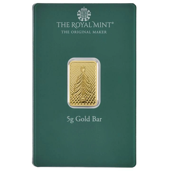 Produkt Sztabka Christmas Tree 5 gramów Złota to inwestycyjna propozycja pochodząca od renomowanego producenta metali szlachetnych - The Royal Mint. Wspomniana sztabka prezentuje świąteczną choinkę. Produkt może być idealnym prezentem podarowanym z okazji Świąt Bożego Narodzenia.