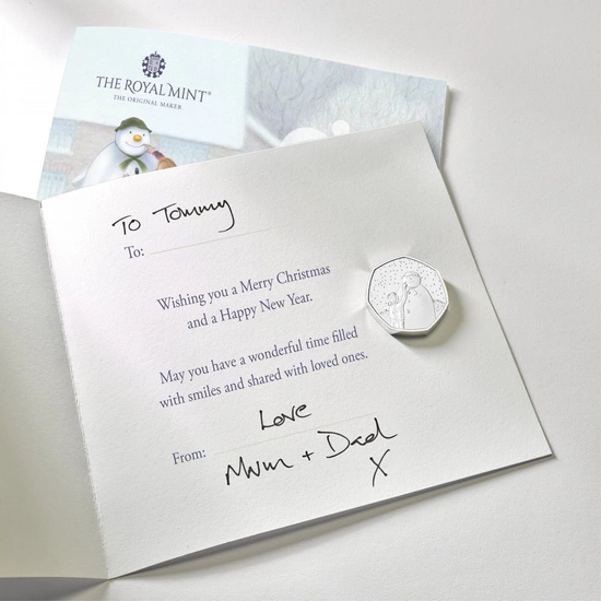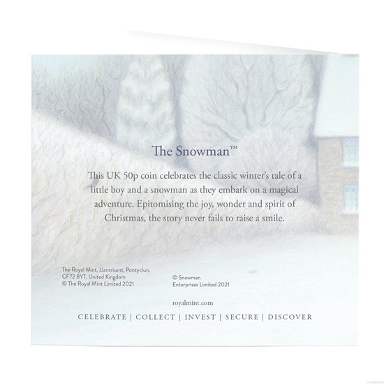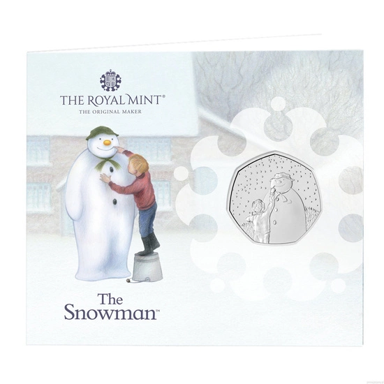 Moneta The Snowman Miedzionikiel 2021 to walor nawiązujący do zimy i Świąt Bożego Narodzenia. Produkt przedstawia chłopca, który cieszy się z nadejścia zimy oraz z ulepienia bałwana.