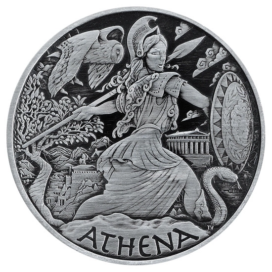 Tuvalu: Bogowie Olimpu - Atena 5 uncji Srebra 2022 Antiqued Coin