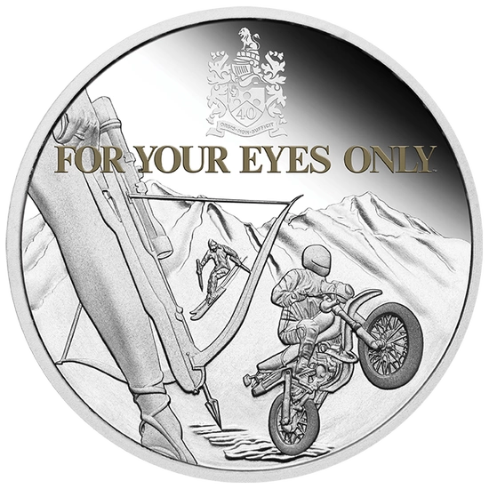 Srebrna moneta Tuvalu: For Your Eyes Only kolorowany 40. rocznica filmu 1 uncja Srebra 2021 Proof to kolekcjonerski egzemplarz upamiętniający najsłynniejszego szpiega-gentelmana Jamesa Bonda 007. Walor nawiązuje do dwunastego filmu "For Your Eyes Only" z 1981 roku. W 2021 roku obchodzona jest 40. rocznica ukazania się filmu.