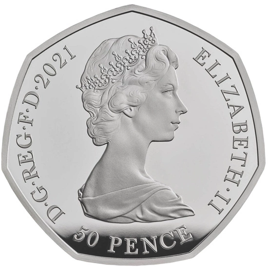 - 50p Base Proof, moneta posiada stop miedzionikiel, wagę 8 gramów, średnicę 27.30mm, nominał 50p.