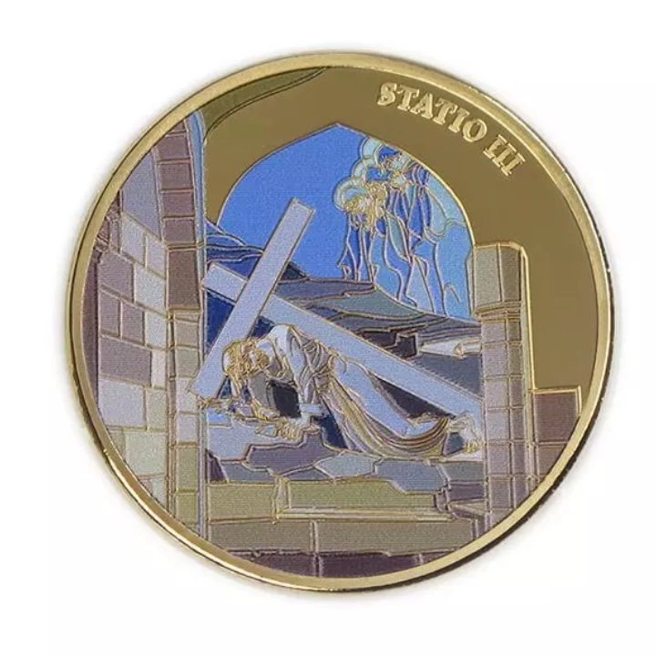 Zestaw 14 monet: Via Dolorosa kolorowany, pozłacany Brąz 2016 Prooflike to unikatowy egzemplarz, który zawiera specjalnie wyselekcjonowane numizmaty. "Via Dolorosa" (łac. "Droga Cierpienia") to rzeczywista, historyczna ulica w obrębie murów Starego Miasta w Jerozolimie i powszechnie uważa się, że jest to ścieżka, którą kroczył Jezus, od procesu przez ukrzyżowanie do złożenia w grobie. Zestaw zawiera kolorowanych monet zawiera 14 stacji z drogi krzyżowej.