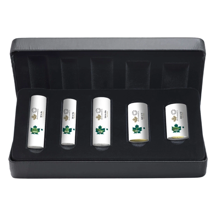 Zestaw Canada: Special Collection - First Strikes 5 x Wrap Roll 2025 to interesujący produkt, który zawiera niektóre z pierwszych monet obiegowych z datą 2025 wybitych w mennicy Królewskiej Kanady w Winnipeg.