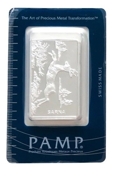 Srebrna sztabka z wizerunkiem sarny to okaz o wadze jednej uncji srebra oraz próbie Ag 999. Ten wyjątkowy walor pochodzi od światowego producenta metali szlachetnych jakim jest Produits Artistiques Metaux Precieux (PAMP).