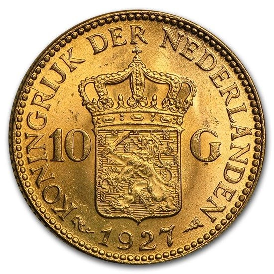 Moneta 10 guldenów królowej Wilhelminy została wybita przez Holenderską Mennicę Królewską. Te złote monety szczycą się długą oraz udaną historią bicia. Złoty Gulden został wybity w próbie 900 oraz posiada domieszkę miedzi, dzięki czemu zachowuje wysoką odporność na zarysowania oraz uszkodzenia. Zawartość całkowita złota wynosi 6,056 grama, przy wadzę całkowitej 6,792 grama.
