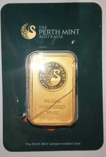 Złote sztabki to klasyczna, a zarazem bezpieczna forma inwestowania, znana oraz doceniania przez inwestorów z całego świata. Oferowana sztabka pochodzi od posiadającego akredytację LBMA producenta wyrobów szlachetnych - Perth Mint. Została wyprodukowana w próbie złota 9999 o wadzę 10 uncji trojańskich. Należy zauważyć iż sztabka posiada uszkodzony certipacki, uszkodzenia są widoczne na zdjęciach produktowych.