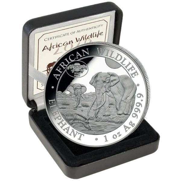 Série Somali Elephant byla zahájena v roce 1999 a již řadu let přitahuje pozornost díky každoročně měnícím se návrhům reverzu. Od roku 2004 jsou mince emitovány jako oficiální zákonné platidlo Somálské republiky, s vládní garancí pravosti, ryzosti a původu kovu. Stříbrná emise o průměru 38,6 mm a nominální hodnotě 100 šilinků představuje klasickou a univerzální volbu pro investory i sběratele.