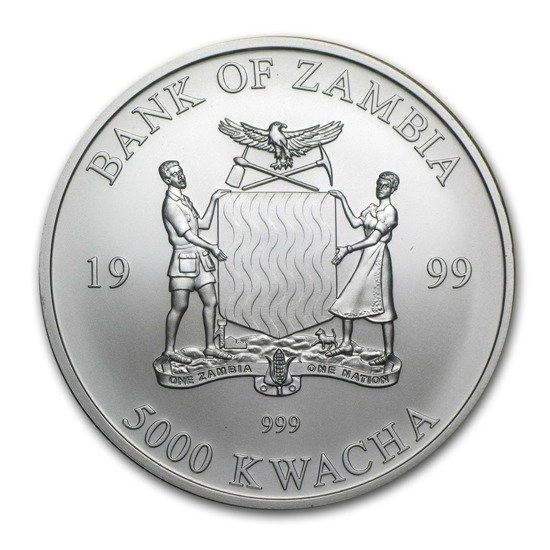 Awers przedstawia herb Zambii.