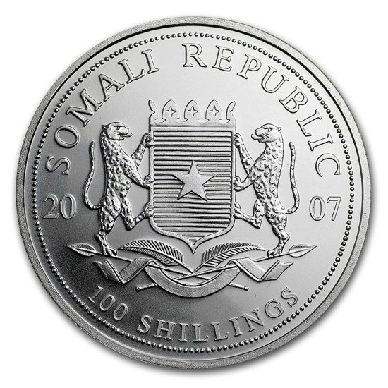 Africká divoká zvěř: Somálský slon, barevný 1 unce stříbra 2007