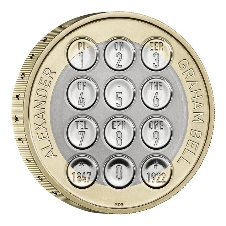 Reverzní strana mince zobrazuje číselnou klávesnici. Na reverzní straně je navíc nápis „ALEXANDER GRAHAM BELL“. Autorem reverzu byl Henry Gray.