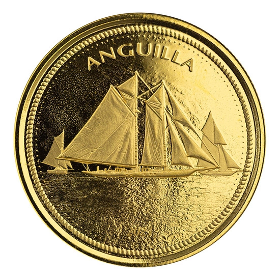 Moneta Anguilla: Regaty żeglarskie 1 uncja Złota 2021 to wyjątkowy produkt, który przedstawia żaglowce nieopodal wyspy karaibskiej - Anguilla, które uczestniczą w regatach. Produkt pochodzi z serii Eastern Caribbean 8.