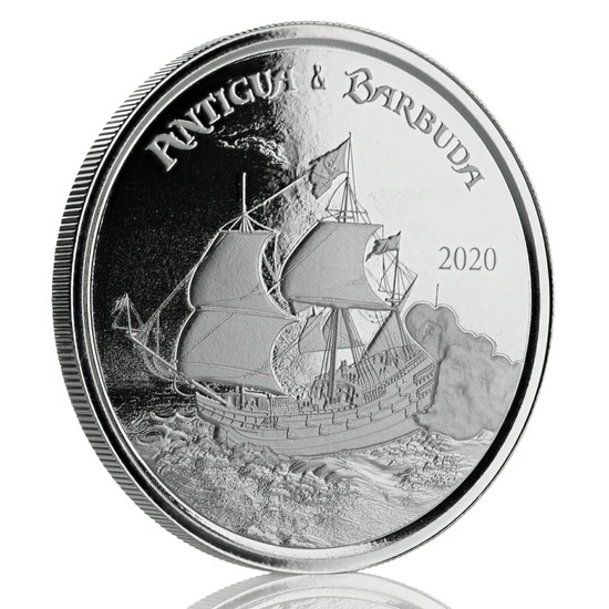 Stříbrná mince Antigua & Barbuda: Rum Runner 1 oz 2020 je jedinečným produktem, který zobrazuje loď „Rum Runner“. Ta byla ve 20. letech 20. století používána k pašování alkoholu v době prohibice. V roce 1929 byla loď potopena americkou gardou. Produkt je ze série Východní Karibik 8.