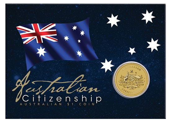 Rewers przedstawia Australijski herb narodowy wraz z napisem „Australian Citizenship”. Herb narodowy Australii zawiera godła sześciu Stanów Australijskiej Wspólnoty na tarczy otoczonej gronostajową granicą symbolizującą Australijską Federację w 1901 roku. Korona herbu zawierająca siedmioramienną gwiazdę pojawia się ponad tarczą, którą wspierają kangur oraz emu. Autor: Sylwia Bąk, Data Dodania: 27.08.2020