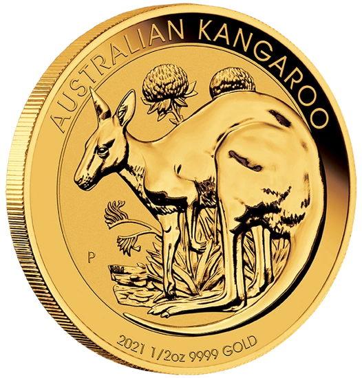 Australijski Kangur, jedna z najpopularniejszych monet bulionowych wykonana została z najwyższej próby złota wynoszącej 9999. Producentem pół-uncyjnej złotej monety jest australijska mennica, Perth Mint. Walor posiada gwarancję rządu Australii i jest pełnoprawnym środkiem płatniczym na terenie kraju emitenta. To wyjątkowe zwierzę jest symbolem Australii. Nazwa kangur (z ang. kangaroo) nadana została przez angielskich osadników i pochodzi od aborygeńskiego słowa „gungurru”, którym tubylcy określali kangura szarego. Awers złotej monety Australijskiego Kangura (Australian Kangaroo) przedstawia podobiznę królowej Wielkiej Brytanii, Elżbiety II, jej imię oraz nominał monety. Na rewersie widnieje kangur wraz z informacją o roczniku monety, wadze oraz próbie, która wynosi 9999. POJEDYNCZE SZTUKI WYSYŁANE SĄ W PLASTIKOWYCH OKRĄGŁYCH KAPSLACH