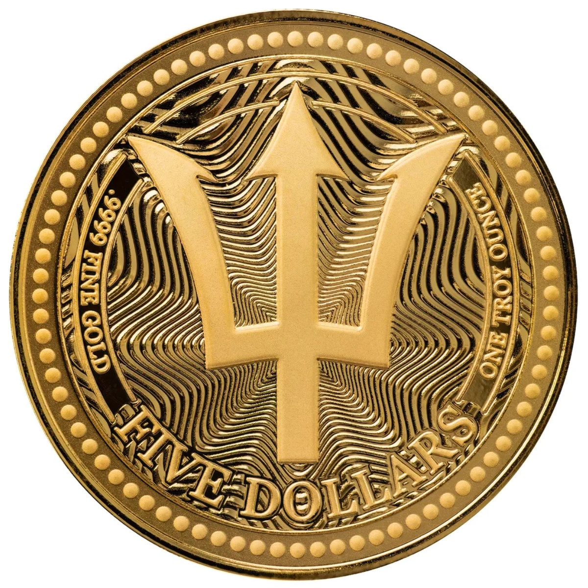 Barbados: Trident je prestižní sběratelská mince ražená z 1 unce ryzího zlata o ryzosti 9999, vydaná v roce 2025 pro Barbados uznávanou mincovnou Scottsdale Mint. Jedná se o plnouncovou verzi oblíbeného motivu Trident, jednoho z nejznámějších národních symbolů tohoto karibského státu.