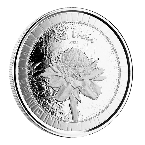 Na reversu je zobrazena květina - vznešený etlinger. Na reverzu je rovněž nápis „ST. LUCIA“ a rok vydání.