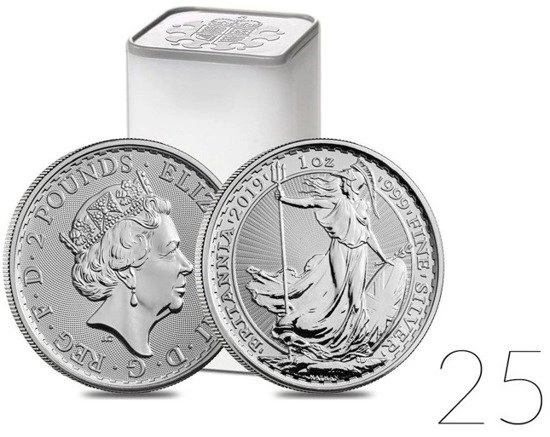 Britannia 1 unce stříbra 2019 BALÍČEK 25 KS