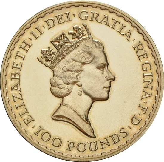 Rewers monety przedstawia tradycyjną postać Britanni, uzbrojoną w trójząb i tarczę. Dodatkowo na rewersie można znaleźć informacje o czystości oraz masie złota.