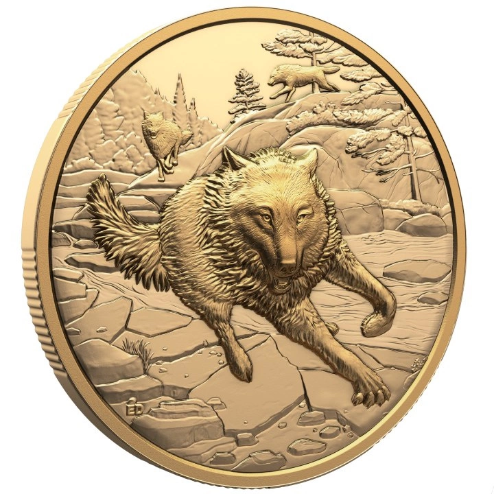 Canada: Great Hunters – Šedý vlk 200 CAD Zlato 2025 Proof Ultra High Relief je třetí vydání série "Great Hunters", které představuje šedého vlka – jednoho z nejzajímavějších predátorů Kanady. Šedý vlk je známý svou týmovou spoluprací, vytrvalostí a schopností přizpůsobit se, což zajišťuje přežití celé smečky.