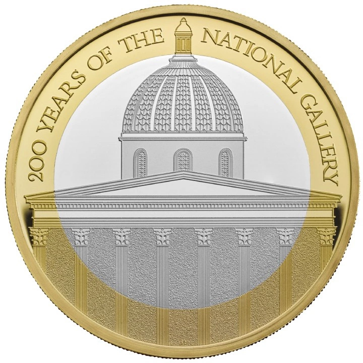Na rubové straně mince je vyobrazena budova Národní galerie v Londýně. Na rubové straně jsou nápisy „200 YEARS OF NATIONAL GALLERY“. Reverzní stranu mince navrhla Edwina Ellisová.