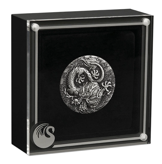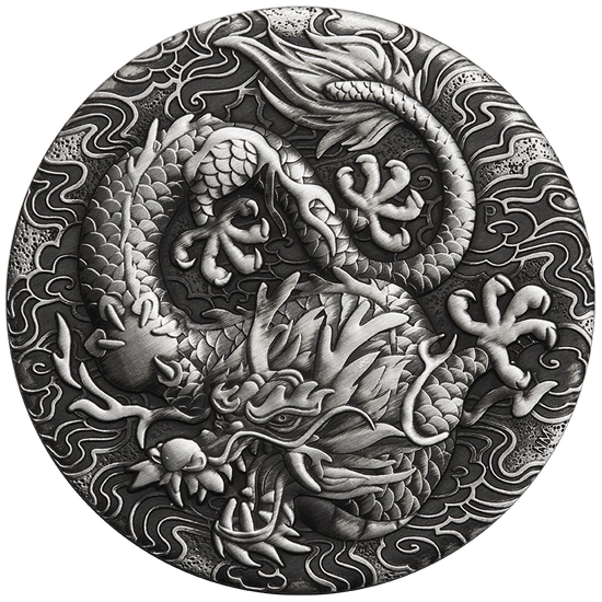 Čínské mýty a legendy: Drak 2 unce stříbra 2022 Antikizovaná mince