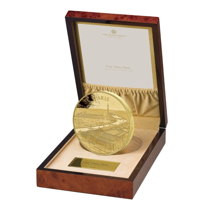 City Views: Paris 1000 grams Gold 2024 Proof je třetí mincí ze série „City Views“. Mince byla inspirována evropskými tolary z 16. až 18. století.